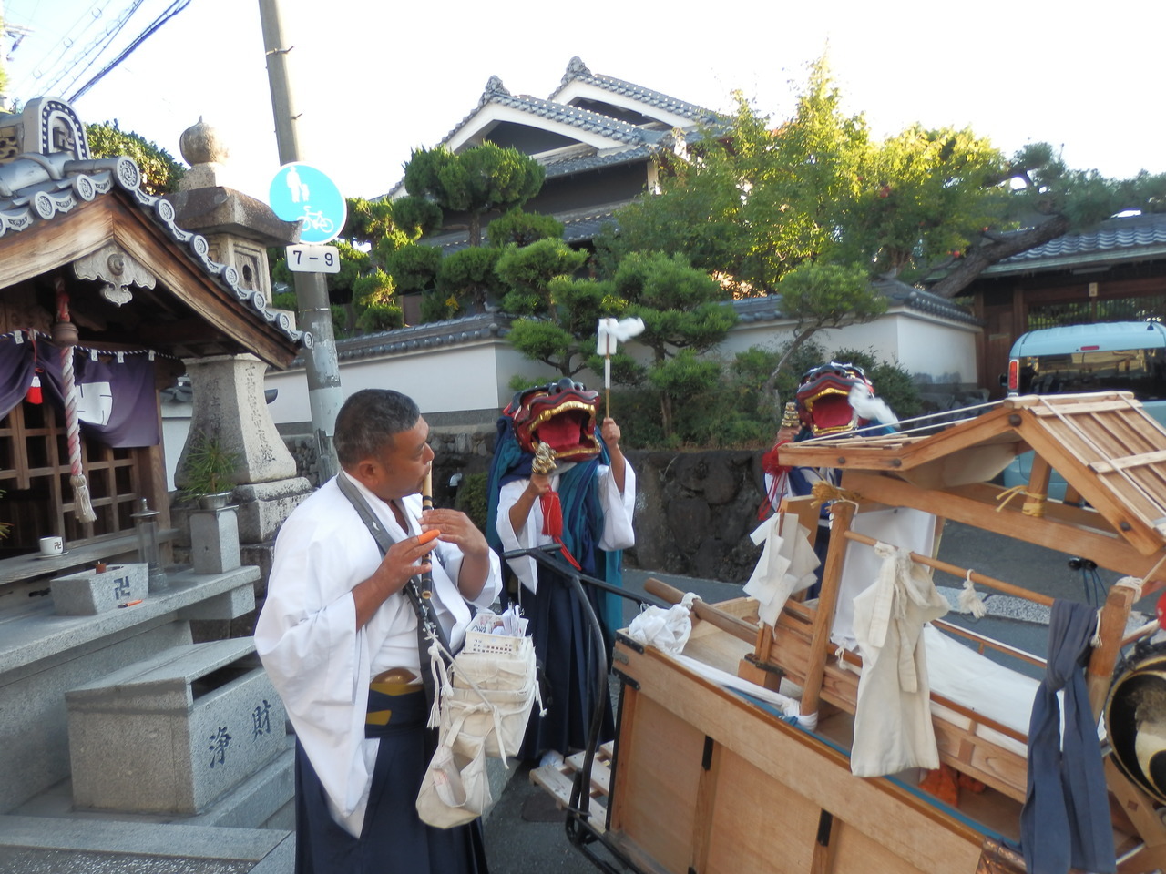 獅子舞と放下芸(曲芸)で構成される神事芸能です。受け継がれてきた旦那場を元旦から12月中旬にかけて巡回。各戸で竈の穢れによる竈祓、火難防止の火伏せの祈祷神事、門付けの獅子舞を行います。ほかにも村の神社や集会所などで「総舞」と呼ばれる芸能を披露します。